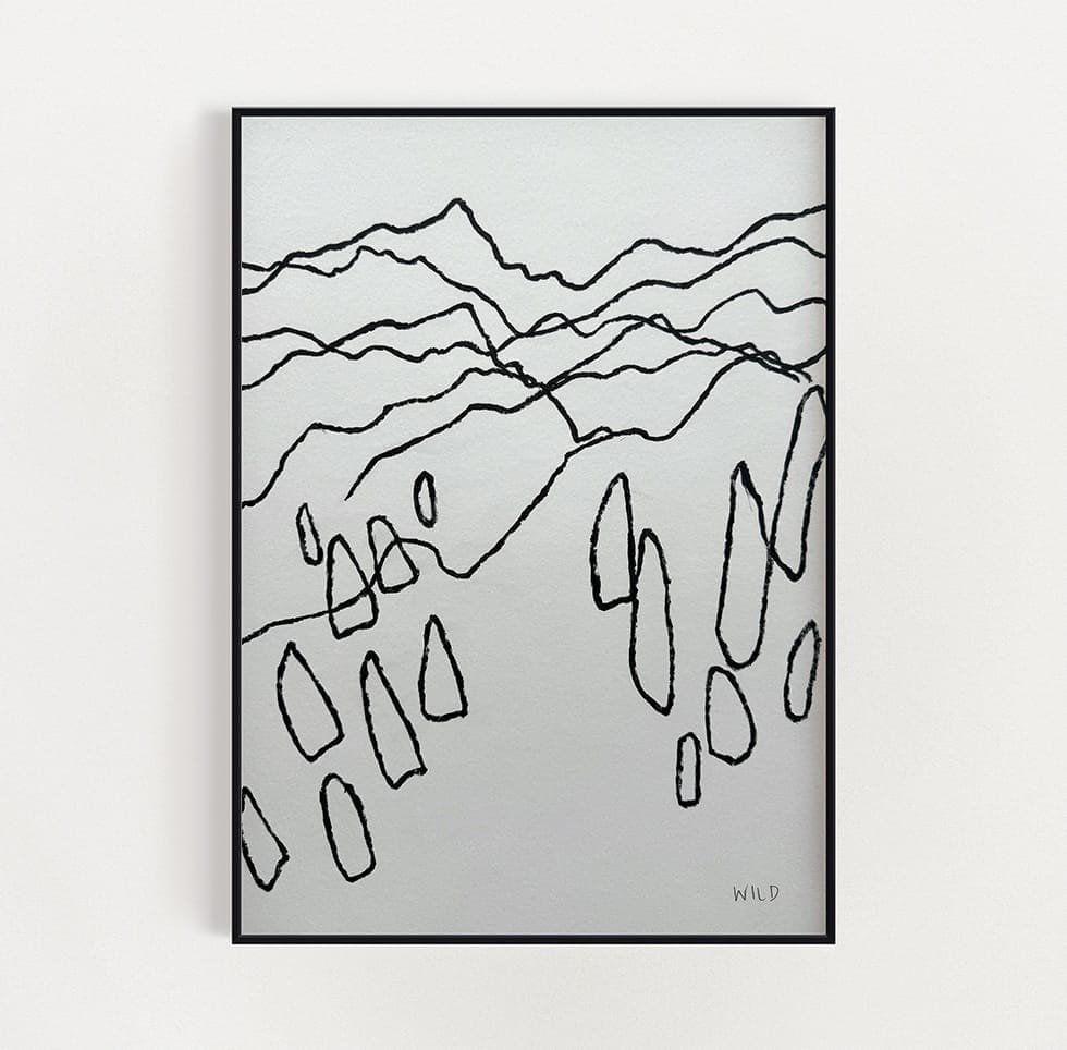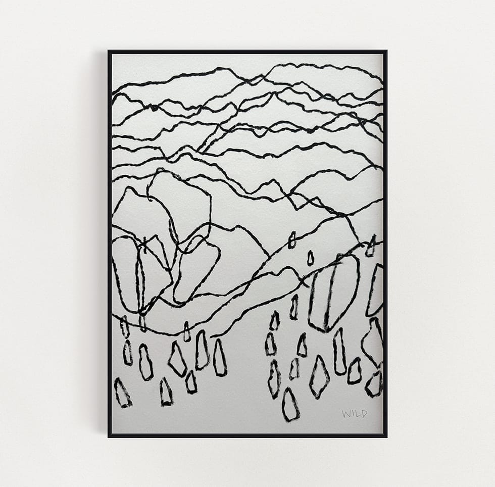 Tracing the geometry of the rocks worn down from millions of years of erosion was the first time I started on this style of drawing where I capture the essence of a mountain area.